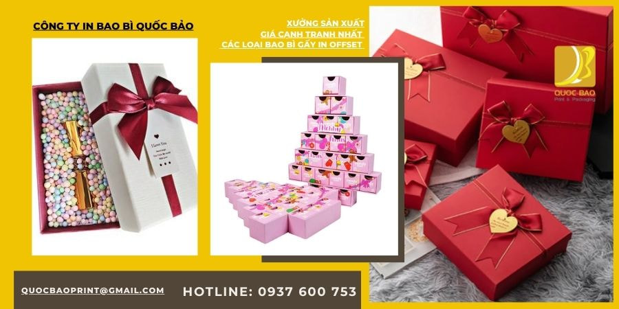 - In hộp carton đựng quà tặng: thiết kế sang trọng, tinh tế, góp phần nâng tầm giá trị sản phẩm.